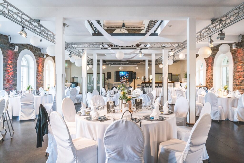 Das Hammerwerk Engelskirchen zählt zu den außergewöhnlichsten Eventlocations im Bergischen Land. Die Kombination aus industrieller Architektur, großzügigen Räumen und urbanem Charakter schafft einen Rahmen, der sowohl Hochzeiten als auch Firmenevents eine besondere Tiefe verleiht.