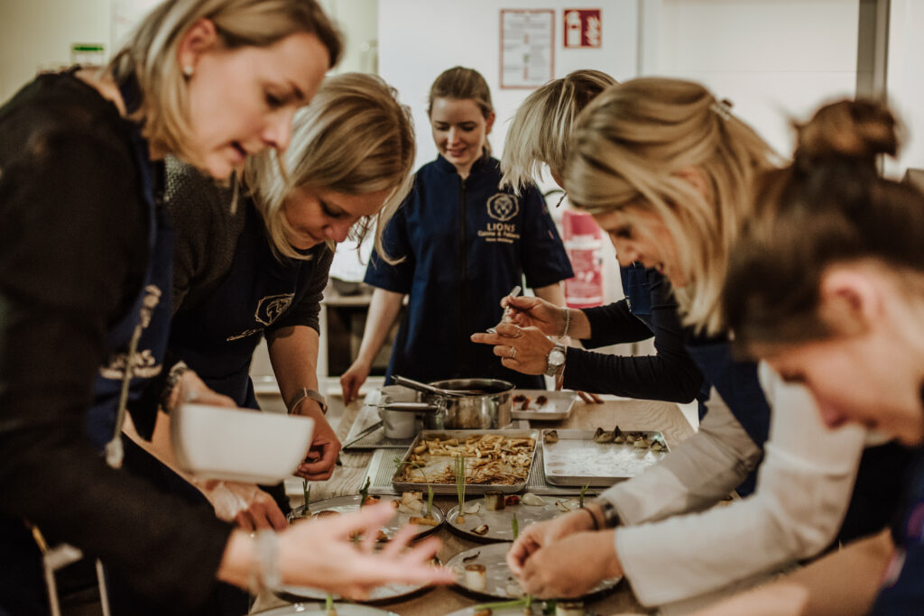 Die Kochschulen von Lions Cuisine sind als professionelle Lern- und Erlebnisorte konzipiert. Im Mittelpunkt stehen Technik, Produktverständnis und strukturierte Abläufe – vermittelt in einem Umfeld, das konzentriertes Arbeiten ebenso ermöglicht wie gemeinsames Erleben.